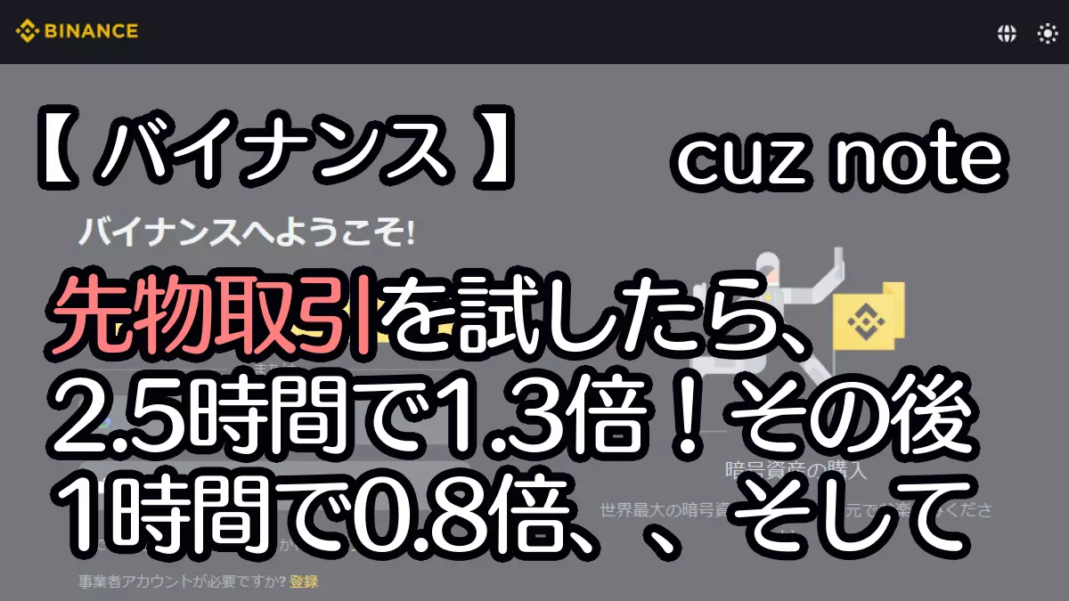 【バイナンス】先物取引を試したら、2.5時間で1.3倍!その後1時間で0.8倍、、そして
